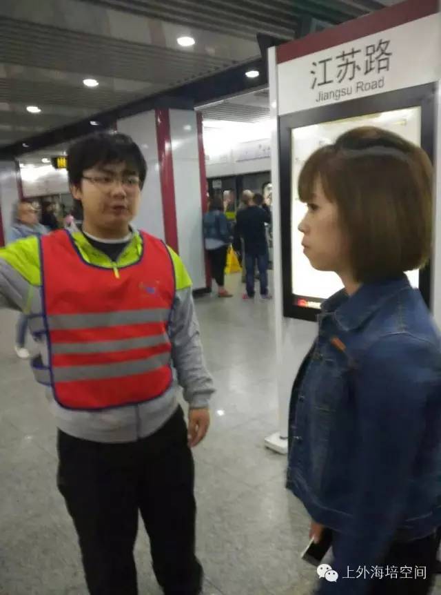 在志愿者团队人员的带领下,我们的学生换上工作服装,被分配至各自的岗位上,随时准备为需要帮助的路人解疑释惑。由于服务站点分布至2/10号线南京西路站,2/11号线江苏路站,8/12号线曲阜路站等都有两条线路通行的位置,又恰逢周末,客流量相对较大,这对学生志愿者们的要求也增加了很多。大家需要在站内细致耐心地为各位乘客解答出站方向或是帮助不熟悉购票流程的乘客购入车票亦或是帮助乘客解决出站时遇到的种种问题。