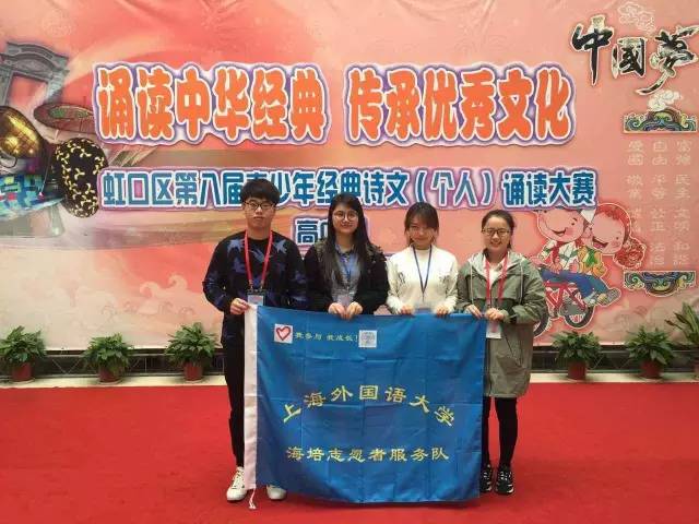 目前,学院与上海市虹口区青少年活动中心共建青年志愿者服务基地,先后参与活动中心举办的“诵读中华经典 传承优秀文化”虹口区第八届青少年经典诗文(个人)诵读大赛、“播种绿色希望 编织彩色梦想”亲子种植系列等志愿者活动,充分彰显了我院青年学子服务社会、奉献爱心的高尚情操和青春风采。