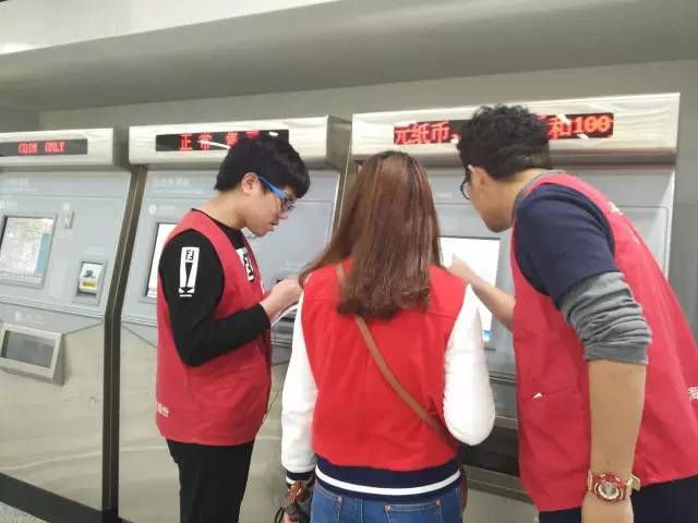 晚上5点后开始出现晚高峰,客流量的剧增加大了对学生志愿者的要求。同学们也开始忙的不可开交,但即使如此大家依旧细致耐心,为行人解决了一个又一个问题,得到了领队人老师和行人的一致好评。