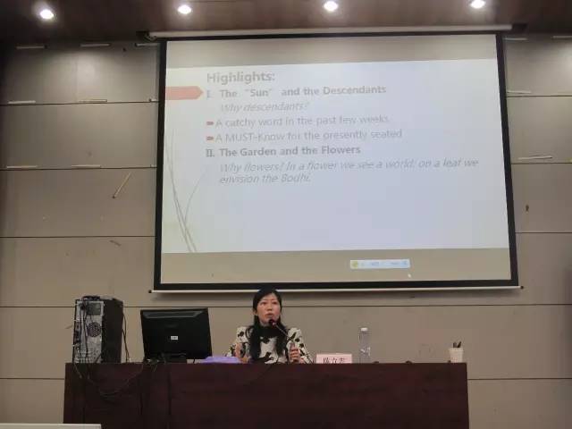 曾经在美国学习深造的陈立青教授,对美国文化早有自己深刻而独到的见地。去年再度赴美访学,更加深了她对美国文化的理解。在讲座接下来的时间里,陈教授与同学们分享了此次访学期间的丰富见闻。从威武有力的老虎吉祥物,到地标性建筑Nassau Hall与Cleveland Tower,陈教授为大家全景式地展示了世界闻名的普林斯顿大学。而另一所位于新泽西州的美国名校——新泽西学院,则给作为访问学者的陈立青老师留下了深刻的印象。陈老师通过大屏幕,与同学们分享了这些美好的记忆。碧草如茵,绿树如云,丛翠掩映中点缀着或古典或现代的学校建筑,当风景如画的校园凝聚成一张张图片,定格在大屏幕上,大家仿佛与陈老师一起来到了美国,置身于新泽西学院美丽的人文与自然景观之中。