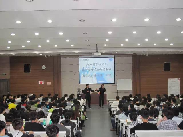 5月4日晚上6点,随着全场整齐划一、洪亮的“晚上好”,上海外国语大学出国留学人员培训部及海外合作学院本学期第三场“海培留学讲坛”系列讲座—海外留学安全防范培训在电教楼402准时举行。日本、新西兰、英国、美国、澳大利亚、加拿大、国际时尚等项目的近三百名学生参加了这场以实训为主的独特讲座。