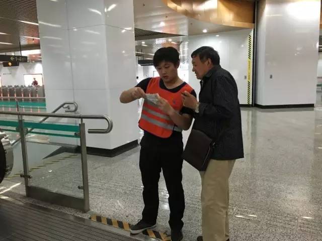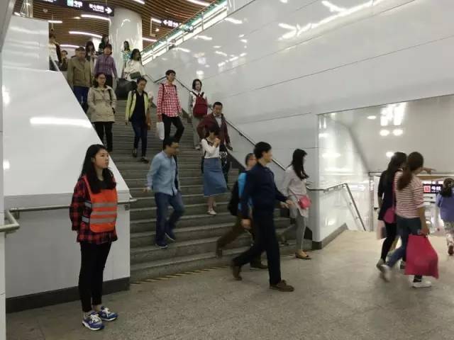 我们的工作非常简单,帮助不了解地铁站线路和出口的乘客们给出方向和指导,让他们节约时间同时也更方便他们的出行。由于是新增设的地铁站,乘客们对换乘和出口的线路都不是很熟悉,所以这也是很多乘客向志愿者求助的原因之一,志愿者们也很认真负责的一一给乘客指明方向。一大部分乘客是中老年人,可能向志愿者提问的时候语言是一大障碍,可是志愿者仍然耐心的为他们指路,提供帮助,尽自己所能帮助他们。