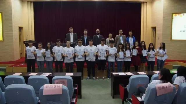 典礼的最后环节,举行了“项目优秀学生奖”、“学习最大进步奖”以及“班长贡献奖”的颁奖仪式。之后,所有2014级新西兰项目学生依次上台领取结业证书并与学院领导、外教合影留念。