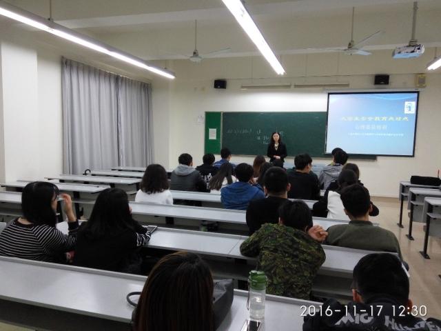 2016年11月17日中午12点15分,在松江和虹口校区同时开展了一场“大学生安全教育点对点”的心理防范专题培训。