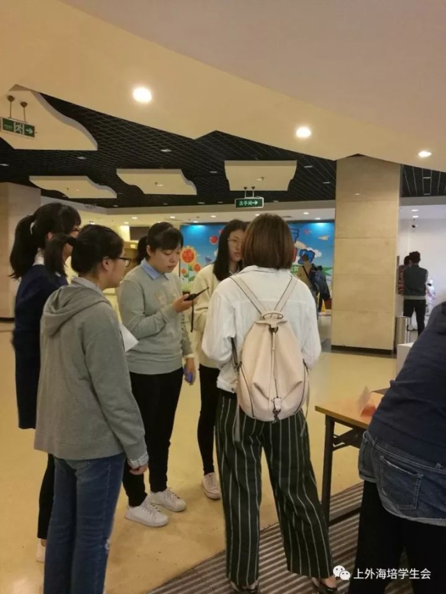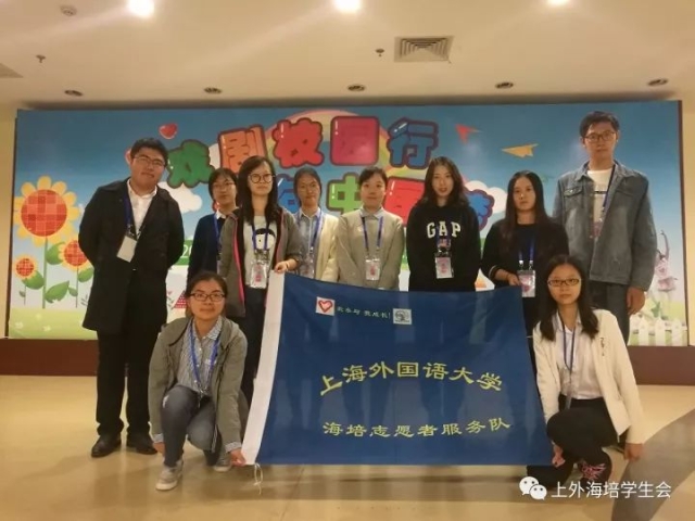 10月14日,上外海培学生会干部在上海市总工会虹口区工人文体活动中心,为当天举行的2017年上海市学生戏剧节少儿歌舞剧专场比赛进行志愿服务活动。