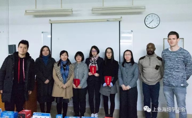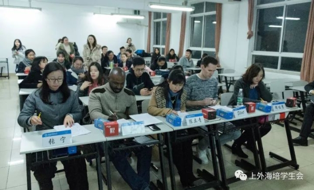 此次比赛有幸邀请评委:上外海培副院长陈立青教授、上外海培教师代表张宁女士、外教John和Elliot以及赞助商代表周佳慧女士,对6位参赛选手的现场演讲进行多方面严格打分。