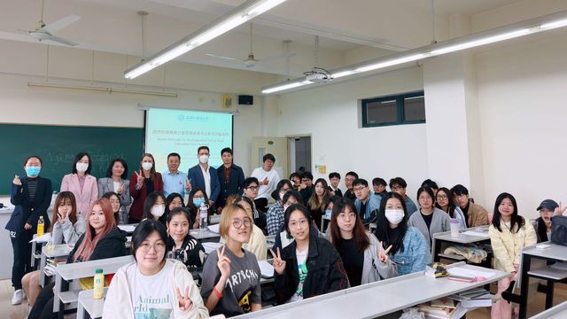 随后,她们来到四教楼教室,与怀卡托大学项目的学生亲切交流。中国和新西兰的大学教育有何不同?新西兰高等教育相比英美澳等国有什么特点?大学毕业后在新西兰就业前景如何?面对学生的提问,她们耐心给予一一解答。丁兰娜(Alanna Dick)教学生用毛利语表达“你好”“谢谢”“长白云之乡”,让学生了解到新西兰多元的文化背景和包容的社会环境。