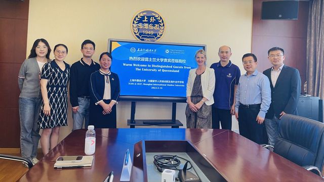 2023年5月19日,澳大利亚昆士兰大学人文社科学院高级经理马吉拉·弗格森女士,商学、经济及法律学部国际联络官朱汉先生到访上海外国语大学海外合作学院交流访问。海外合作学院副院长桑红、朱玉山及相关负责老师参加了会议。
