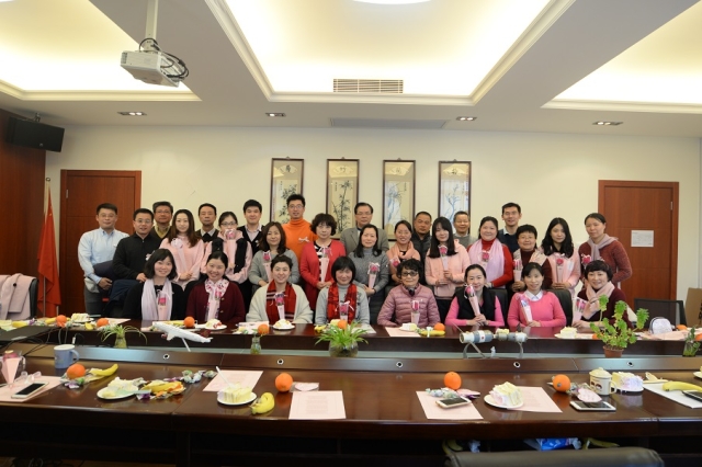 “阳春三月 诗韵海培” ——出国留学人员培训部及海外合作学院2018年三八节主题活动 十九宏图谱巨章, 两会盛开党旗扬; 三月崇光暖海培, 幸福全由努力创! 在贯彻党的十九大精神开局之年,在实现中国梦的征程之中,在上外争创国内一流高校、国际知名的高水平外国语大学的目标之下,围绕“巾帼育英才 建功新时代”的主题,我们迎来了第108个三八国际劳动妇女节。 3月8日中午,出国留学人员培训部及海外合作学院党政领导、工会干部、妇女之友代表及全体女教职工30余人欢聚在教工小家暨妇女小家举行 “阳春三月 诗韵海培”——出国留学人员培训部及海外合作学院2018年三八节主题活动。继去年“心如红烛,爱在杏坛—海培三月诗会”后,今年的主题则凸显海培多语种、国际化的特点。 首先是多语种诗歌赏析。由陈立青、周成、卢诗聪、何梅、陈健、姜璐旸老师分别介绍和朗诵了英国诗人拉迪亚德拉·吉普林的《如果》、俄国诗人普希金的《致凯恩》、日本光孝天皇的《春野采摘》、韩国诗人金素月的《金达莱花》。老师们以英、俄、日、韩、中五种语言深情演绎,将诗作者的情感与表达融为一体,为大家勾勒出诗歌的意象。在行与行之间的留白中,思绪飞翔与诗歌描写的美景中。接着是各国礼仪介绍。陈健老师展示了日本的茶道礼仪,姜璐旸老师介绍了韩国衣食住行生活礼仪。通过不同文化礼仪的讲解使大家增加了对跨文化理解与欣赏。 海培男老师也前来助兴。行政办公室的张欢、陆永诚、张超、郑华俊老师在蔡坚老师口琴的伴奏下献上了舒婷的《致橡树》,英语教研室的朱玉山、陈怡和盛建元老师改编创作了《新时代海培女子颂》。男老师们的激情演绎倾诉了对海培这个大家庭的喜爱、对海培女同胞的友情。海培学生会制作了爱心贺卡和精美娇艳的玫瑰以表达对女教师的感谢与祝福。一花一世界,一叶一春色,一诗一情怀。HAPPY,就是这么简单!海培,就是这么暖心! 新红海棠花枝嫣, 不负春光吟诗念, 四时最好是三月, 回来仍旧是少年。 今年庆祝三八节期间,海培英语教研室获得了2017年校巾帼文明岗、王继楠、孙德刚夫妇获得了校比翼双飞模范佳侣,在这份催人奋进喜悦中,海培将继续秉持以“服务国家发展、服务人的全面成长、服务社会进步、服务中外人文交流”为办学使命,积极推进上外“多语种+”办学战略中做出海培的努力!