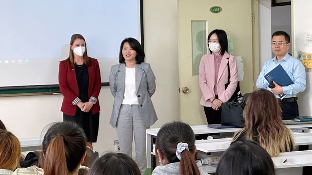 随后,她们来到四教楼教室,与怀卡托大学项目的学生亲切交流。中国和新西兰的大学教育有何不同?新西兰高等教育相比英美澳等国有什么特点?大学毕业后在新西兰就业前景如何?面对学生的提问,她们耐心给予一一解答。丁兰娜(Alanna Dick)教学生用毛利语表达“你好”“谢谢”“长白云之乡”,让学生了解到新西兰多元的文化背景和包容的社会环境。